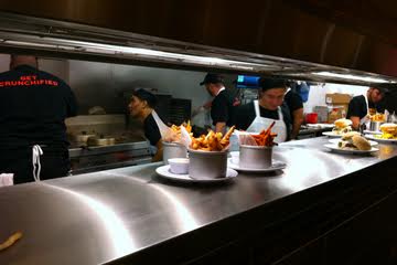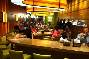 I checked out Bobby’s Burger Palace, celebrity chef Bobby Flay’s new hamburger restaurant in Dadeland Mall. To get right down to the grill – the burgers are terrific – moist and juicy, with quality grade beef and interesting toppings. And the French fries are crispy and plentiful. On the right is the Bobby Blue Burger. Yep – it’s as good as it looks!