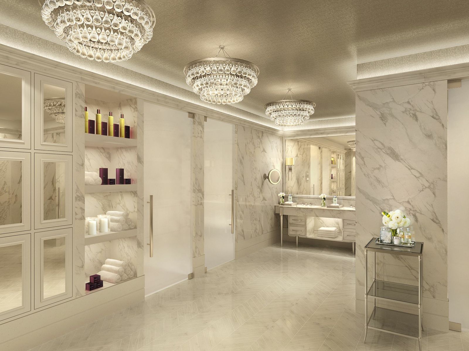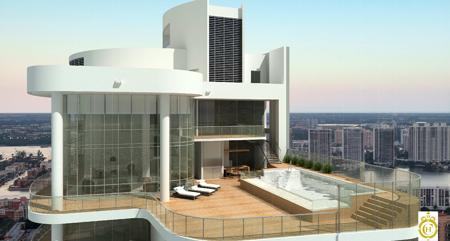 Besides having a Shabbot Elevator, the amenities include a wine lounge, cigar bar, home theater, kids club, his and her spa, fitness center, ballroom, moon bar, valet, concierge and security.