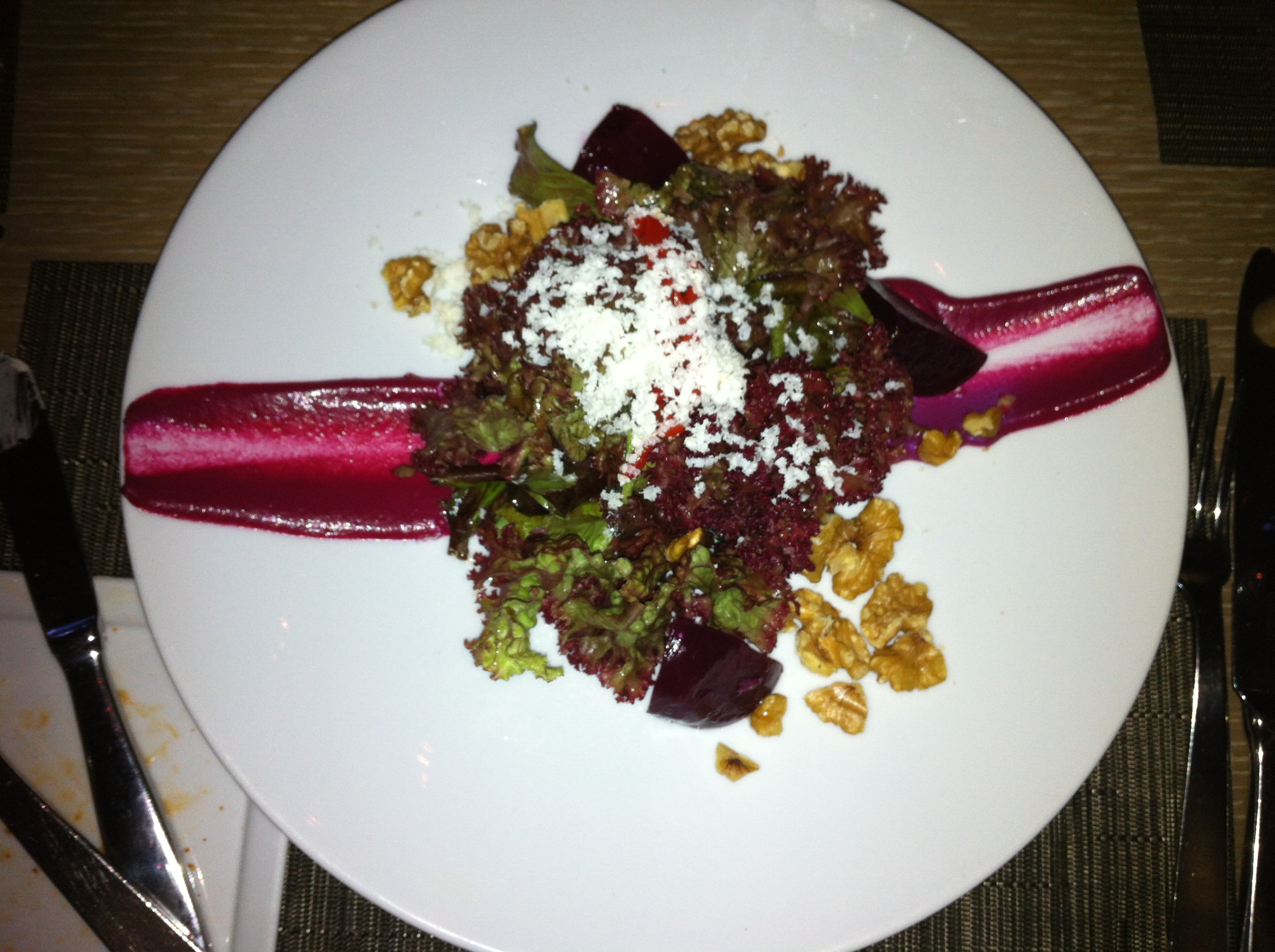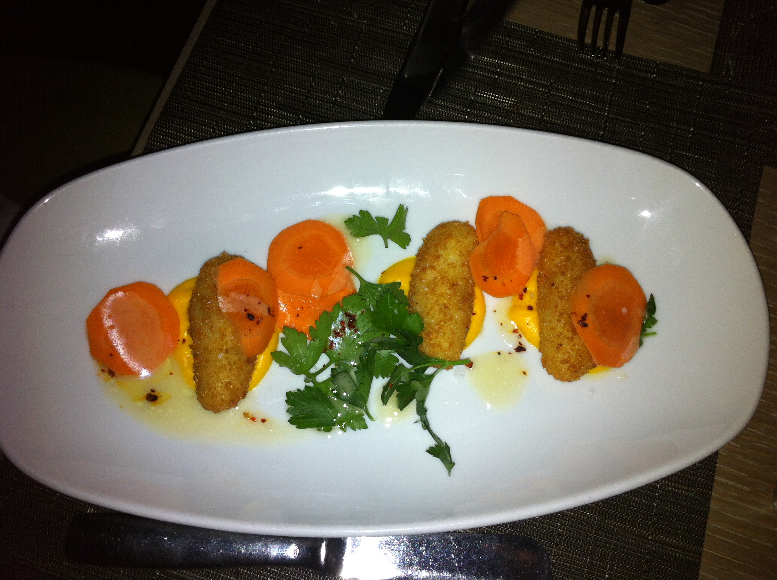 Spice Menu starters included a deliciously refreshing Red Salad with Roasted Beets, Queso Fresco, Red Walnuts and Piquillo Pepper; Chicken and Truffle Croquetas with Carrot Puree and Parsley Salad; and Pork and Duck Terrine with Spicy Mustard, Preserved Peppers and Grilled Bread.