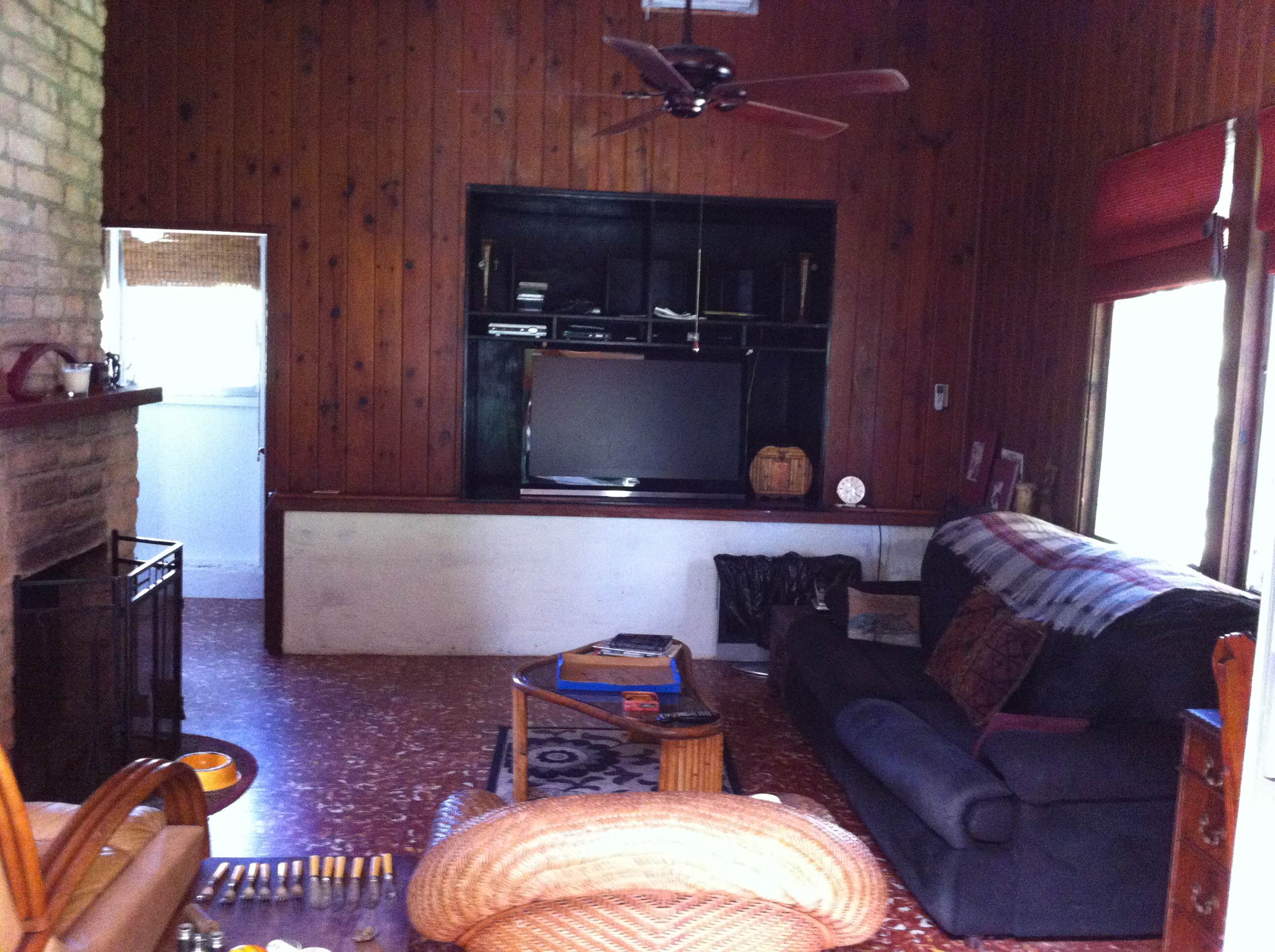 In 1941, a warm and inviting living room with huge fireplace was added along with the bathroom and a new breezeway. The old porch became the new kitchen as it stands today.