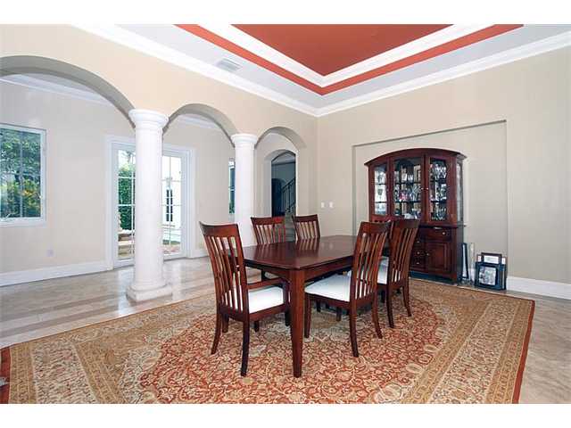 It includes six bedrooms, six and a half baths, 5,392 square feet of living space and a formal dining room and living room with a fireplace. The kitchen and family room open onto to a large covered terrace and pool patio.