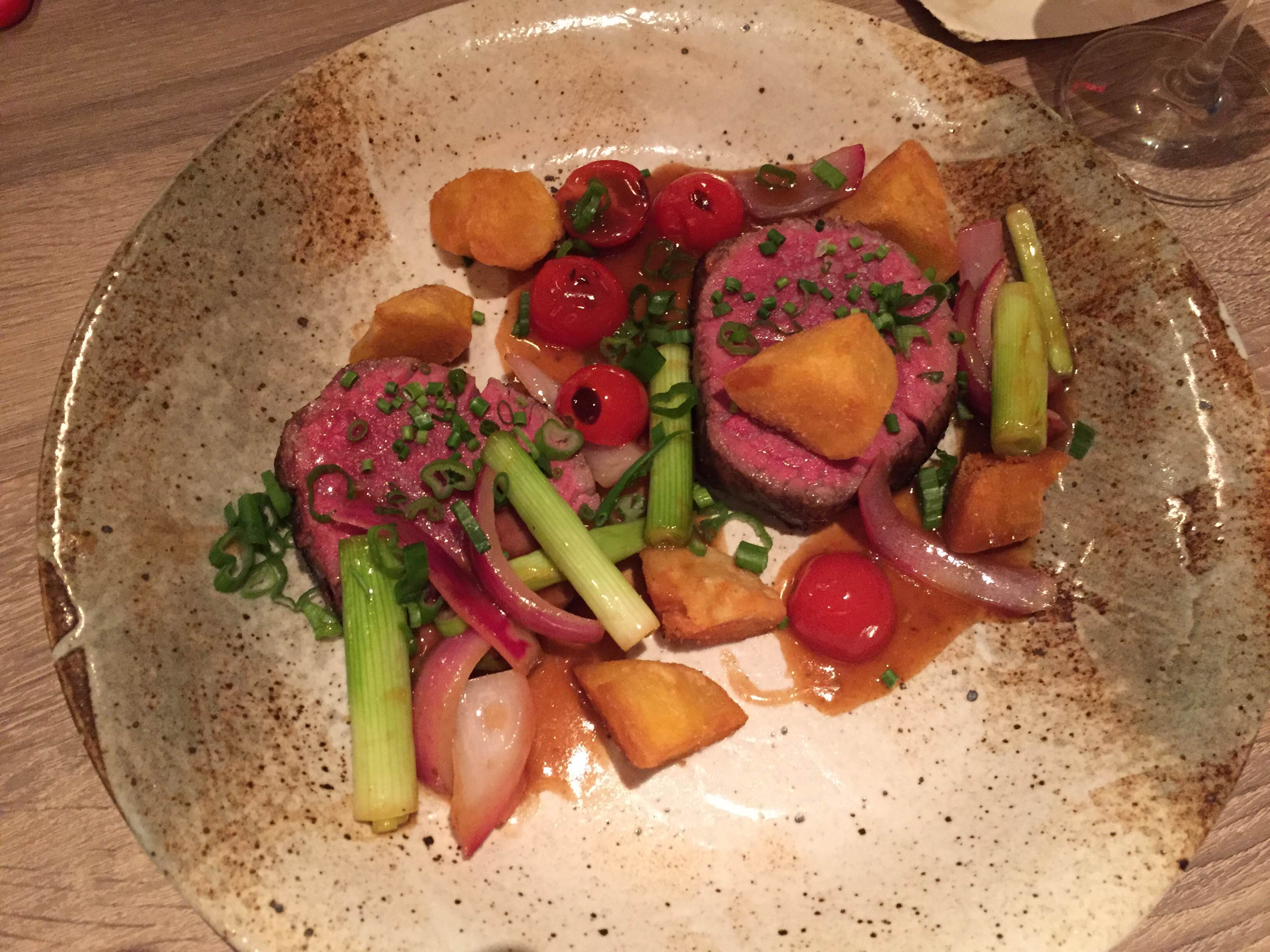 We were greeted at 1111 Peruvian Bistro by David Rosendorf , one of the founders of this delightful concept. Chef de jour, Diego Munoz prepared eight courses of interesting and delicious Puruvian cuisine. I brought my friend Sweetpea, who was also a virgin Coybaya. We both agreed that the best course was the first, Ceviche Apaltado, a fish ceviche with creamy leche de tigre, avocado, aji limo, capers and olive oil. The capers were a great touch and had significant impact on the flavor. Wine pairing: Peter Yealand, Savignon Blanc, 2015 Marlborough, New Zealand