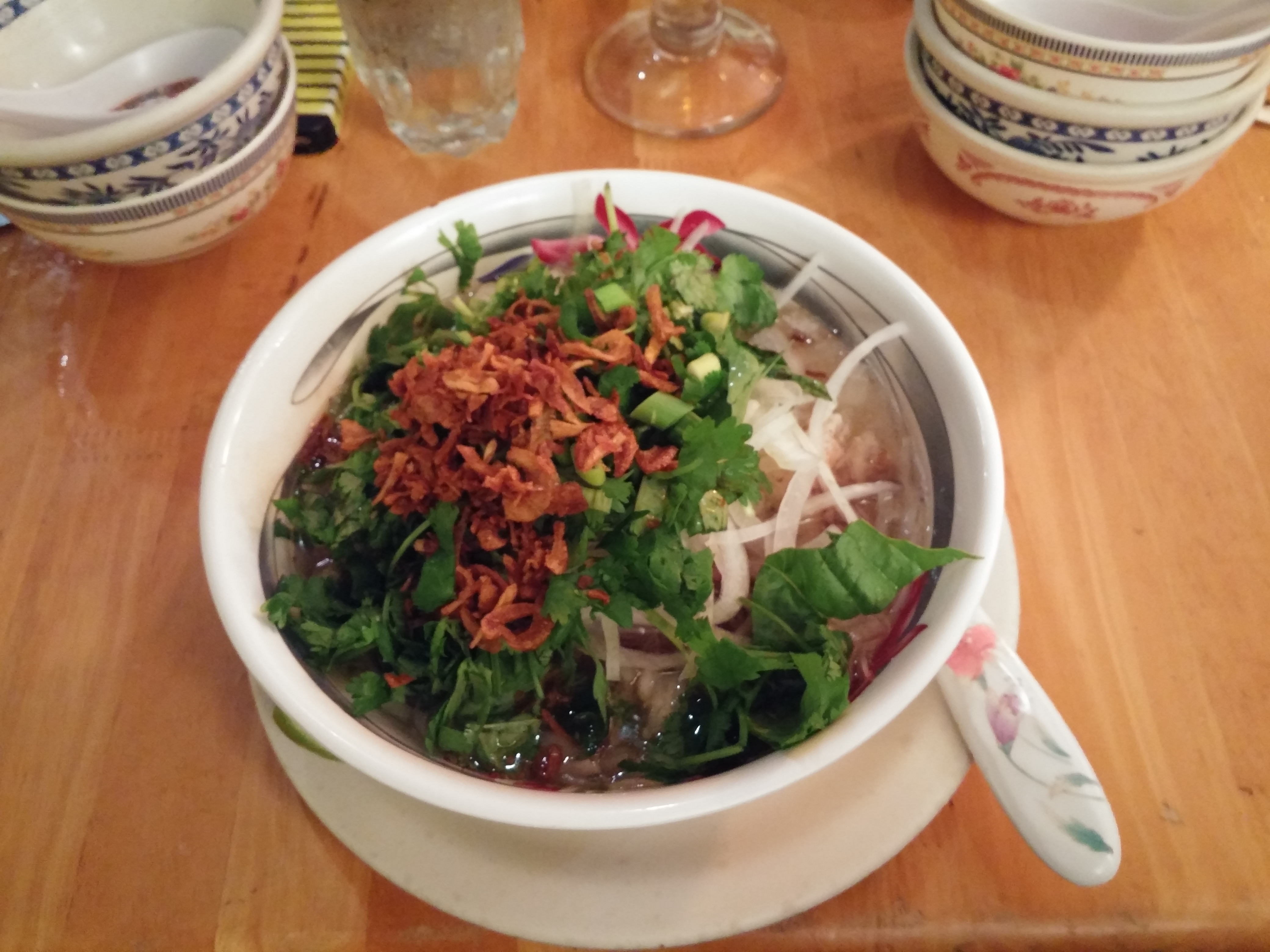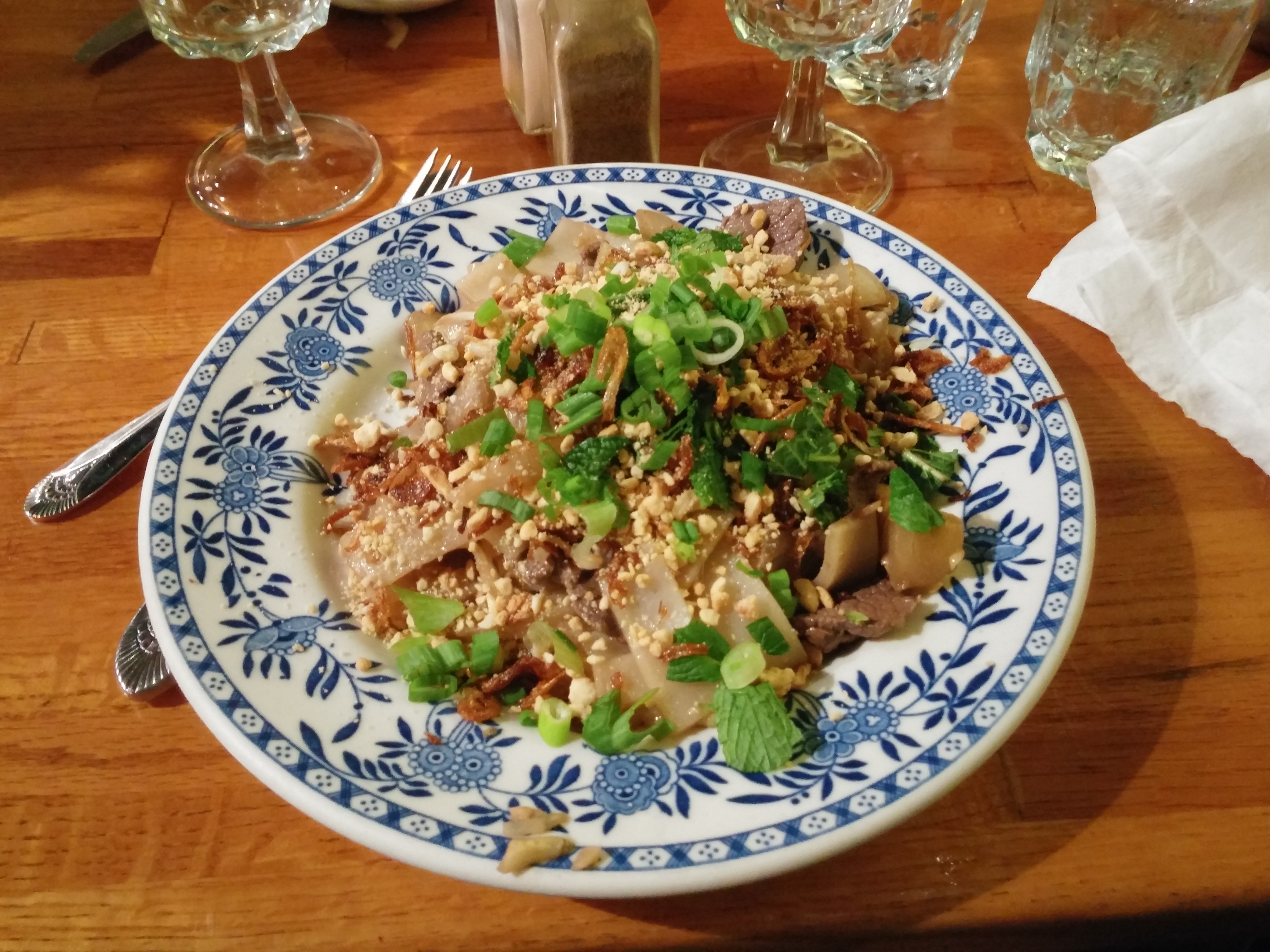 After 36 years, the final night of pork rolling cakes, calamari salad, best pho in the world, beef and fresh rice noodles and spicy fried chicken was nothing short of delicious delirium. Despite the Friday early seating, the spirited diners were jubilant to snag a table for the last supper (perhaps). The eight and ten o’clock diners were no doubt mightily disappointed that the early birds got the last of the Banh Cuon – steamed pork rolling cakes.