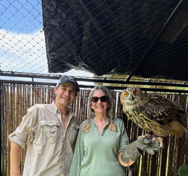 Lots of time was spent with the Galapagos Tortoise gang who munched enthusiastically on hand-fed romain lettuce. They actually enjoy having their shell scratched. So we scratched. And everyone had a chance to support the gorgeous owl- who is hootingly heavy.