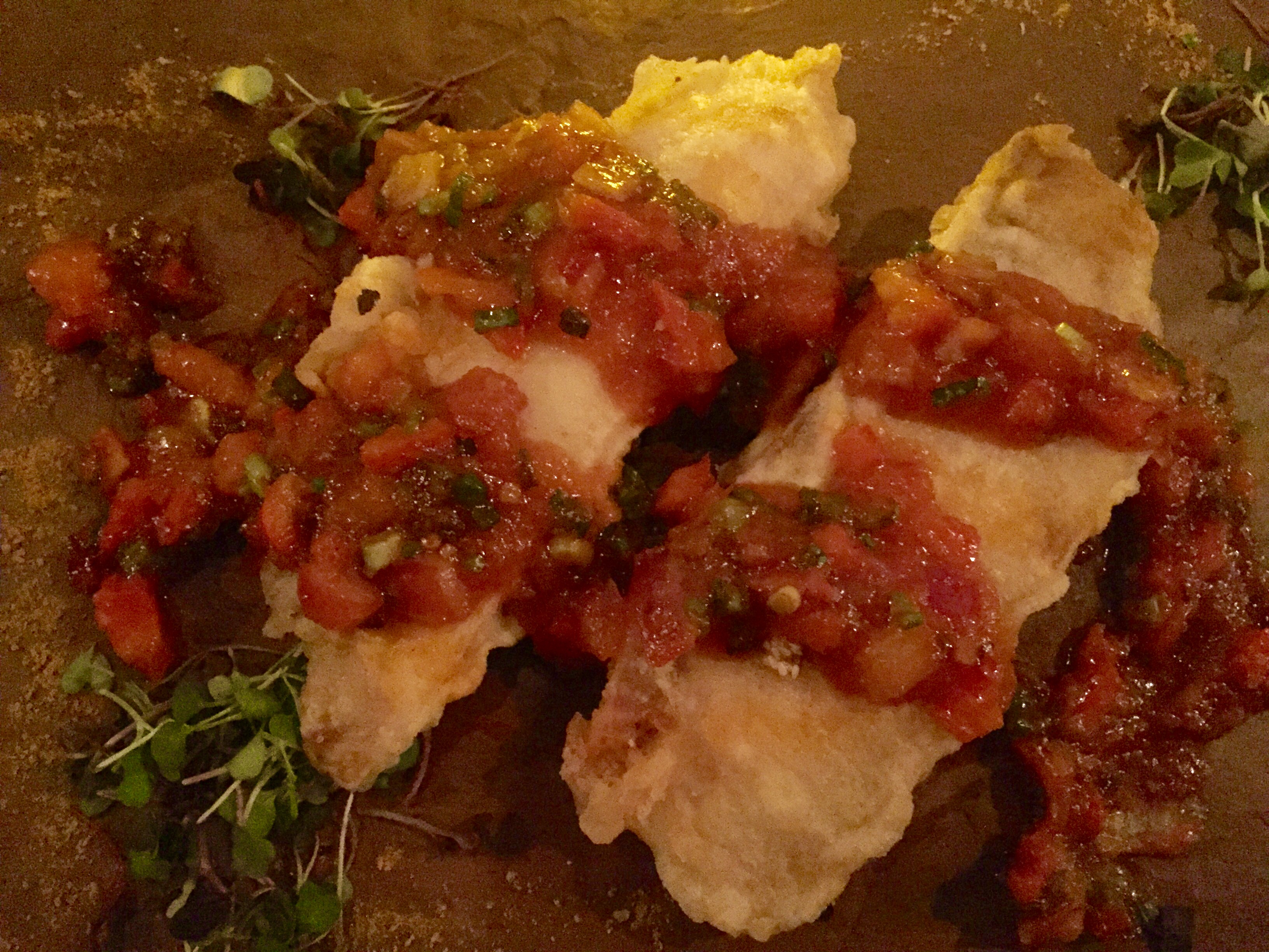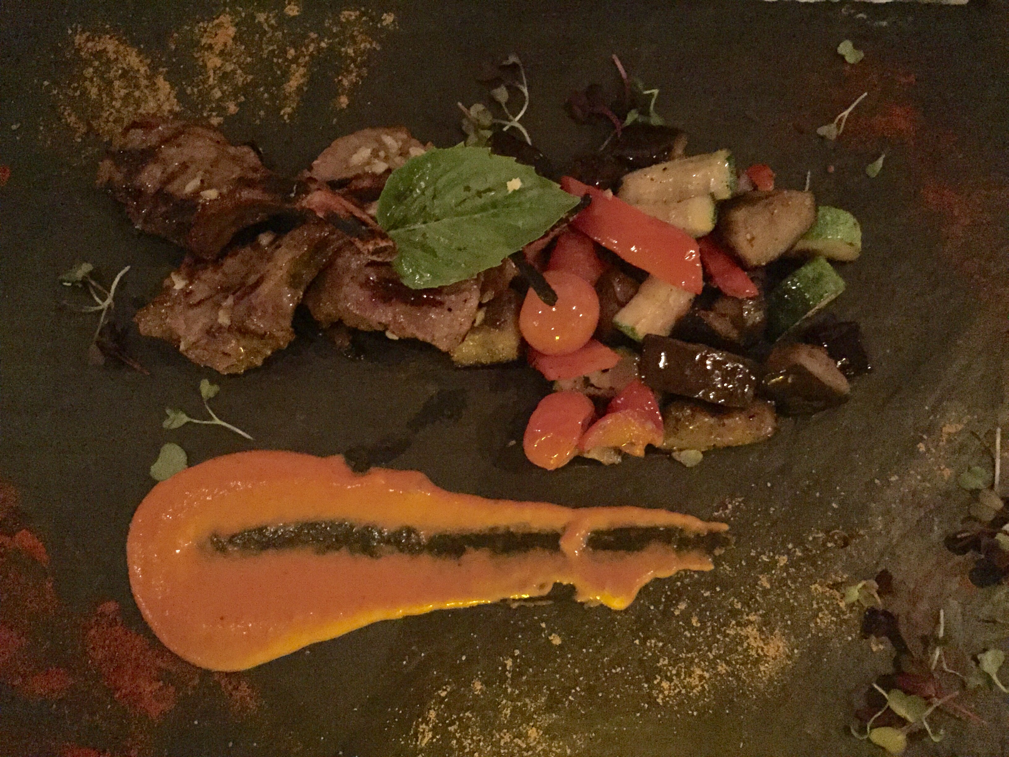 We had a fantastic variety of small plates, my favorite being the Vietnamese Pork Rolls served with lettuce, mint and a phenomenal dipping sauce. I would return just to have these and not share a single bite. The Green Tea Crab Rangoon with a Thai sweet chili sauce was excellent as was the Mamaliga with Foie Gras. We shared the Shrimp Dumpling Soup with spinach, scallion and fried garlic that really hit the spot on this very cold Miami night.